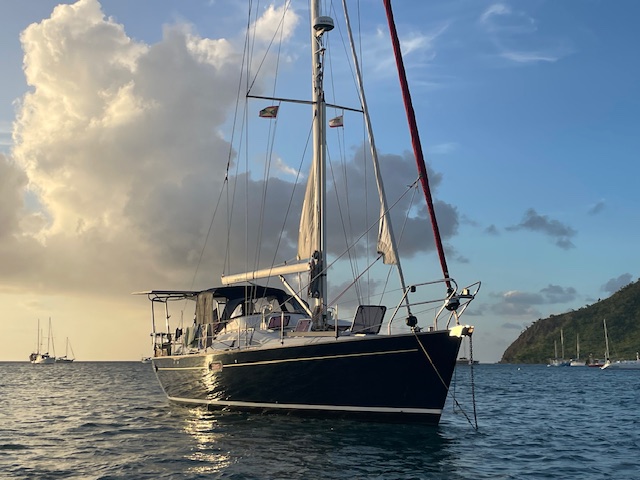 For the last two days we’ve been chilling here in Carriacou — “chilling” in the sense of staying put at anchor in Tyrell Bay with no ambition to go anywhere. The bay is sizeable, well protected, shallow, and calm. A beach, and beyond it colorful houses, line the shore, and a steady breeze gently sways JACE.