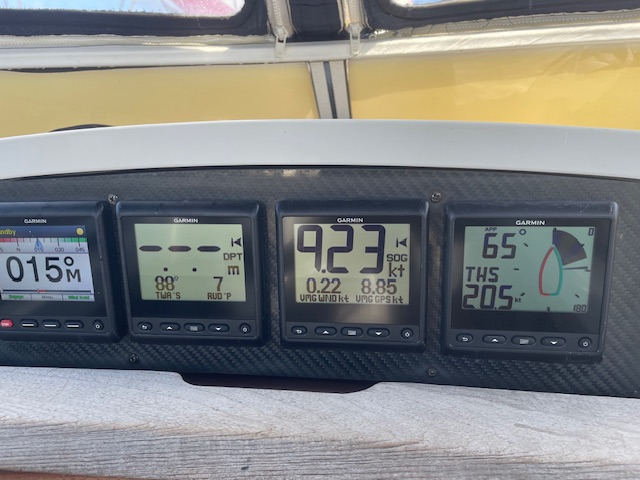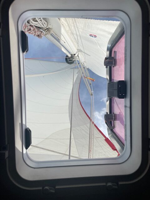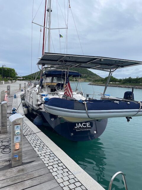 Greg flies out of St. Lucia on Sunday, so it’s high time we move north. And move we do. Thursday morning, after a couple of early work calls and breakfast, we put-put out of the marina and set sail around 10:30. Perfect 20–25 knots of wind — and unlike the northeasterlies of the past days, it’s now due east, ideal for our route. With a reefed main, staysail, and half a genoa, JACE powers across the swell, rolling in diagonally on the starboard bow. At seven to eight knots we roller-coaster over the seas and make it to Bequia in just four hours. Greg spends most of the time on the helm and is loving JACE’s good manners and minimal weather helm.