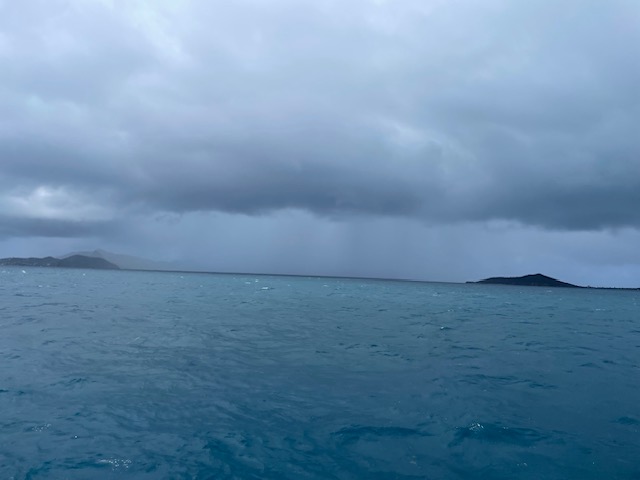 I wake early. The wind is howling and the eastern sky is dark. My rain radar suggests we have maybe an hour. I cancel a 7 a.m. work call, wake Greg, and within twenty minutes we’re ready. We haul anchor and storm out of the anchorage. Just a few miles north lies Canouan and its new, very protected marina — that’s our target. It becomes a race against the rain, but we make it. Fenders out, lines ready, and we dock alongside in this enormous and nearly empty basin just as the downpour hits.